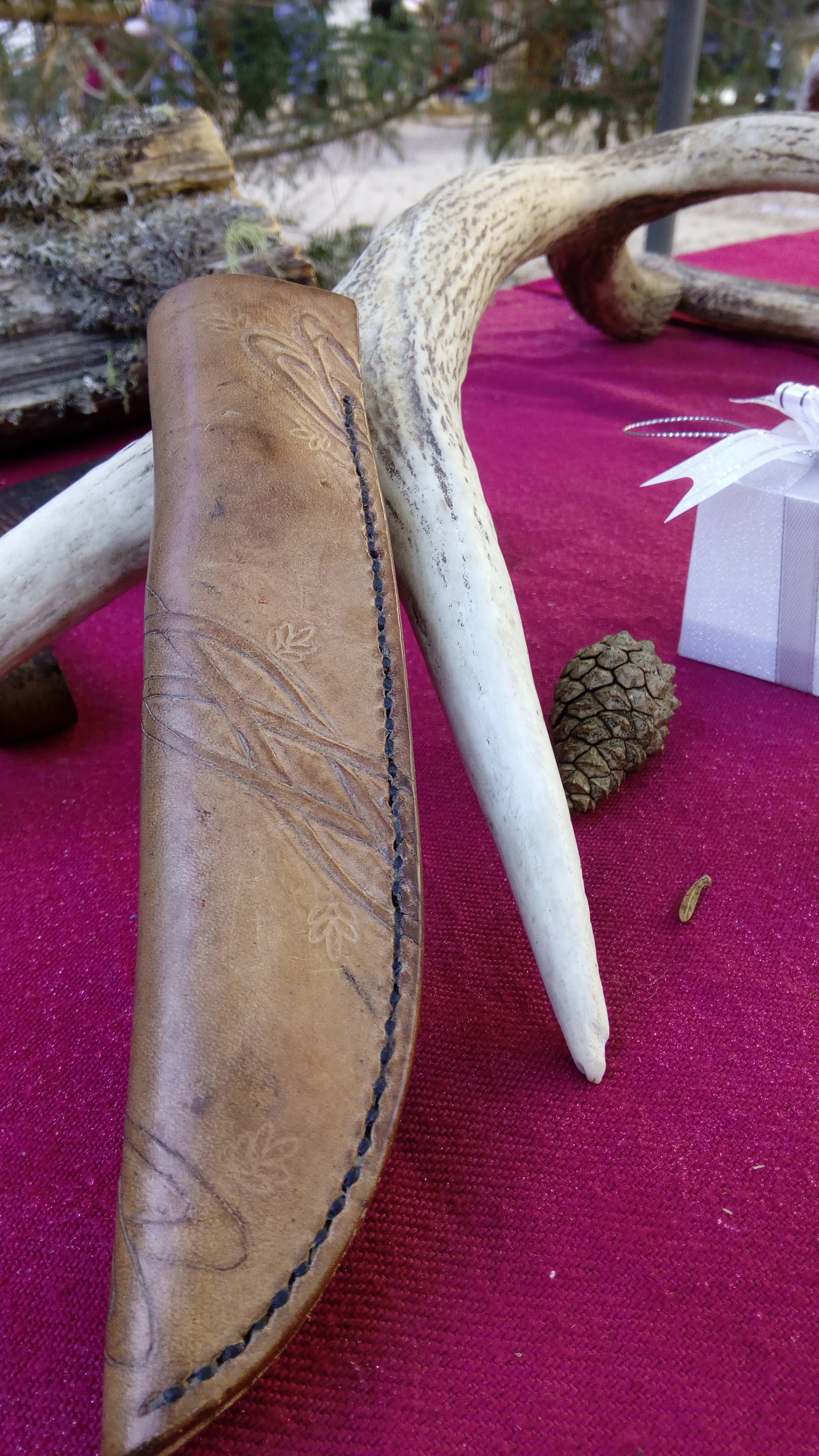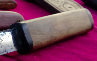 Lame en acier carbone, manche en bois d’olivier et corne de buffle, vendu avec son étui en cuir